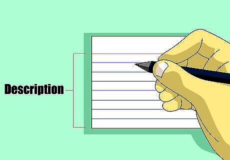 Write down the definitions on the other side. When you've written all the vocabulary words on the blank side of the cards, flip your stack over. Write down the definitions of the terms on the lined side of your index cards. Make sure you leave yourself enough room. Some words may have longer definitions. Try to write small for these words.