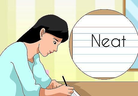 Use neat handwriting. When writing index cards, try to use your best handwriting possible. You do not want your cards to be illegible and if you cannot read the definition for a particular word, your index cards will not be effective. Write slowly and neatly through all of your cards. Take breaks when necessary. If your hand begins to feel tired, this can affect the legibility of your handwriting. Limit how much you put on each card. Try to only write down one vocabulary word per card. Writing too small could cause your handwriting to become muddled and hard to understand.