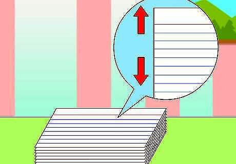 Always stack cards in the same direction. When you finish using your index cards, make sure they're stacked in the same direction. For example, make sure the sides with the vocabulary words are pointed up while the sides with the definitions are pointed down. This way, you can more easily keep things consistent when you're studying.