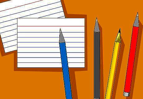 Gather your supplies. In order to make flashcards by hand, you should first gather your supplies. You can get most of the supplies you need at a local department store. You may also find some materials at an office supply store. You will need index cards, which are 3 by 5 inches (7.6 by 12.7 cm) cards on which you'll be writing your vocabulary terms. You'll need a pen and a pencil. It's a good idea to write the cards down in pencil first, in case you misspell something, and then trace over them in pen so they're clear and easy to read. Consider investing in several different colors of pen. This way, you can color-coordinate your cards by subject or unit. Choose colors you can easily read, however. Something written in yellow ink may be hard to make out, while something written in blue or red is easily readable. EXPERT TIP Christopher Taylor, PhD Christopher Taylor, PhD English Professor Christopher Taylor is an Adjunct Assistant Professor of English at Austin Community College in Texas. He received his PhD in English Literature and Medieval Studies from the University of Texas at Austin in 2014. Christopher Taylor, PhD Christopher Taylor, PhD English Professor Christopher Taylor, Adjunct Assistant Professor of English, notes: "Flashcards are a great tool for memorizing vocabulary words! Put one word on the front of each card and the corresponding definition on the back of each card. Remember to write largely and legibly."
