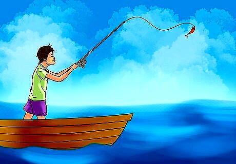 Dump the juice all around the boat. Make sure you cover a medium distance away from the boat.