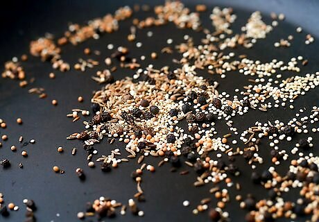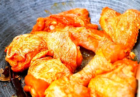 Make the curry powder. This recipe will help you make the curry powder to have some to spare when you're done cooking the chicken. Here's what you need to do to make it: Toast the cumin, fenugreek, anise, mustard, black peppercorns, coriander seeds, and allspice in a small skillet over high heat. Do this for at least a minute or two, until the spices become fragrant. Remove the spices from the heat and cool them. Grind the spices in a spice grinder and then combine them with the turmeric powder.