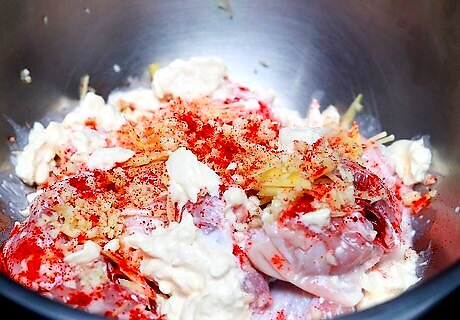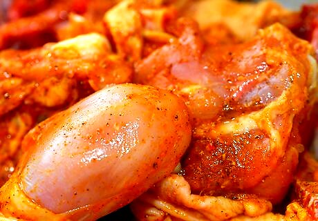 Season the chicken with curry powder. Use about 4 tablespoons (59 ml) of the curry powder to season the chicken. Make sure to evenly cover all sides of the chicken with the powder.