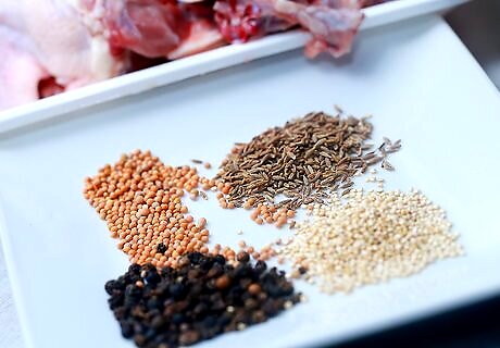 Gather your ingredients. To make delicious Jamaican curry chicken, you'll need to gather your ingredients for making your curry powder as well as for the curry chicken itself. Once you make the powder, you can season the chicken with it before you cook it. (In a pinch, you can just buy some curry powder, but where's the fun in that?)