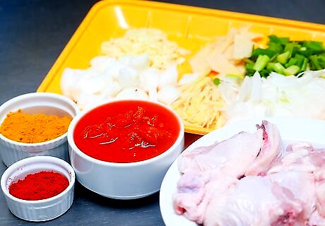 Gather your ingredients. Using a slow cooker takes much more time, but the end result is worth it because the chicken will be tender and succulent.