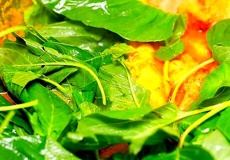 Stir in the spinach. Once you've prepared your chicken curry, you can throw in the spinach and stir it until it's wilted. This should take less than a minute.