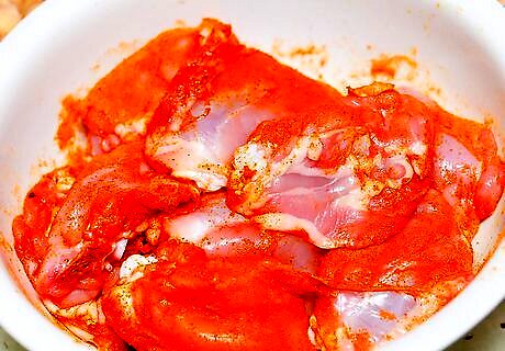 Prepare the chicken. Sprinkle the chicken with one teaspoon of garam masala and one teaspoon of curry powder along with a fair amount of salt and pepper to taste. You can make this mixture in a bowl and then sprinkle it over the chicken, or even press the chicken into the mixture. Just make sure that you season both sides of the chicken.