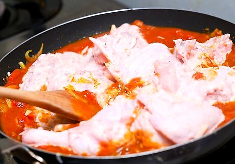 Turn the heat to low and let the chicken simmer for another 10-15 minutes. This process will allow the chicken to fully cook and to stew in the vegetables and spices for a bit. Sure, frying it or cooking it over higher heat will get the job done faster, but your chicken won't get that same authentic flavor.