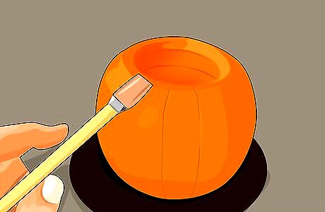 Let your painted pumpkin dry completely. It will feel dry to the touch pretty soon after painting, but it's best to let it sit overnight. The surface of the paint will dry faster than the full coat, so play it safe and give it some extra time. You don't want to risk messing any of your painting up by handling it too soon.