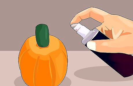 Spray your pumpkin with the sealant. You can do this before the glue is dry. Applying the sealant is the final touch, and it will blend your stem and pumpkin together by adding one, cohesive finish. It will also protect your pumpkins from any wear and tear. Spray over the entire pumpkin and stem, and let them dry overnight. Now, it's time to find a spot in your home for your gorgeous homemade pumpkins!