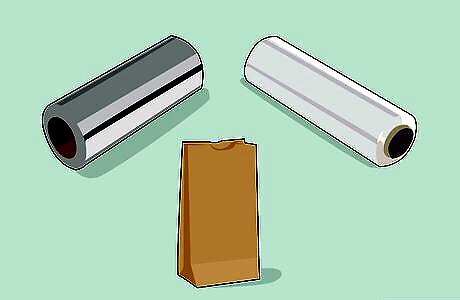 Gather your paper, aluminum foil, and plastic wrap. You probably already have these at home, and you'll need them for this project. Look for heavy-duty paper like a paper bag. This will be used to create the form of the pumpkin. You will need enough foil and plastic wrap to cover the surface of the pumpkin, whatever size you choose to make it.