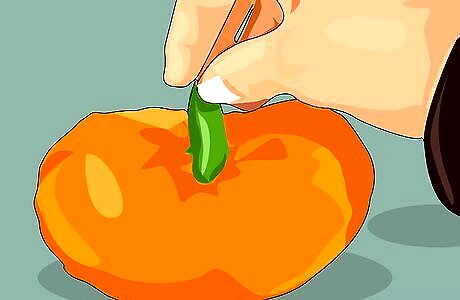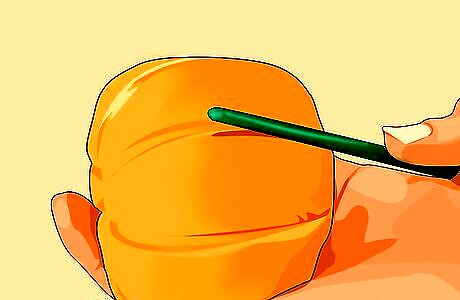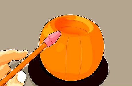 Flatten the top where the stem will attach. After you've created the ridges and you're satisfied with the texture of the sides of the pumpkin, you'll need to add a bit of detail to the top. The stem will need a flat surface to be glued to. Using your fingers, gently press down on the top to form a little indent that will fit the stem. Place the stem to the top of the pumpkin to ensure it fits properly.