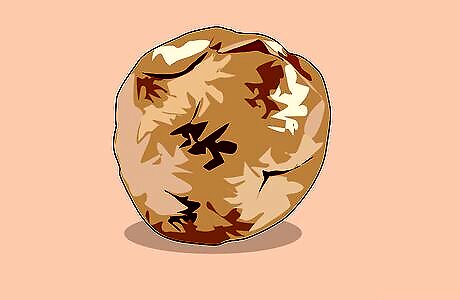 Wrap your paper ball in aluminum foil. The paper ball will start unraveling the moment you take your hands off of it. The aluminum foil will hold it in shape. Once you've molded a piece of aluminum foil around your paper ball, you can start to mold it into more of a pumpkin shape. This is the pumpkin form that will create the base of your clay project. The great thing about pumpkins is that they're naturally bumpy, so don't worry about trying to make it perfectly smooth.