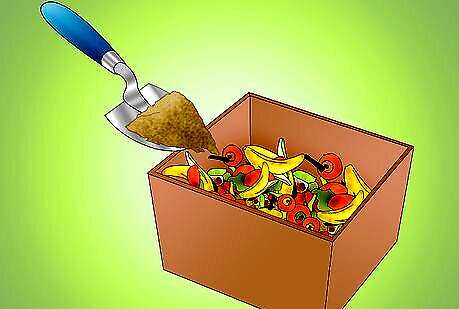 Add torn newspaper to your compost bin. Each time you add kitchen scraps to the compost pail, you'll need to add a handful of shredded newspaper or cardboard as well. The nitrogen-rich kitchen scraps balance with the carbon-rich newspaper to create a balanced environment for bacteria.