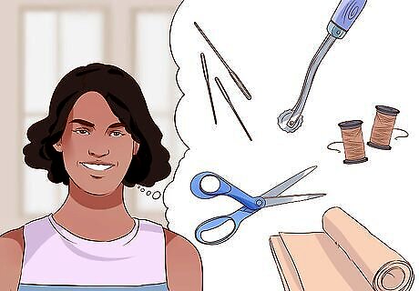 Gather your scissors, stitching, and sewing supplies. If you don’t already have these supplies you can buy them at an arts and crafts store too. You can use a sewing machine if you have one available, but felt is easy to work with. You can just use a needle and thread.