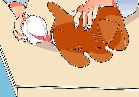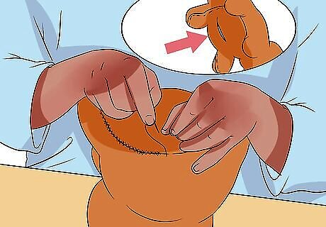 Stuff your animal. Using the whole you left stuff your animal thoroughly with polyester fiberfill. Make sure the animal is well stuffed but not overstuffed. You want the animal to feel firm without looking like it is going to explode. Use your judgment.