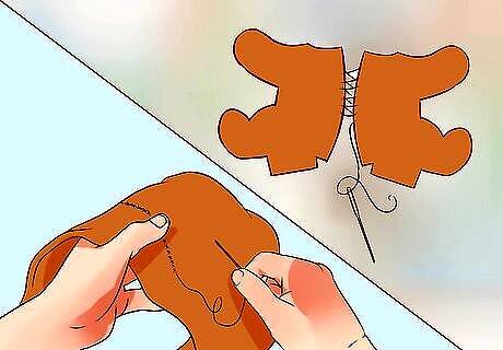 Connect your belly piece. The belly piece is generally one of the last pieces to add. Using the little dog as an example, you would turn the body pieces upside down and add the belly piece to the bottom around the edge.