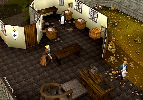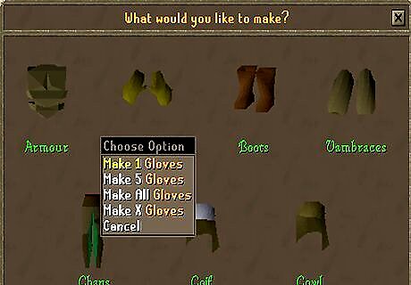 Gather cowhide. The best place to do is in the cow field of Lumbridge. A lot of new players prefer to train on cows there. Try to pick up an entire inventory of hide in one sitting to save time later.