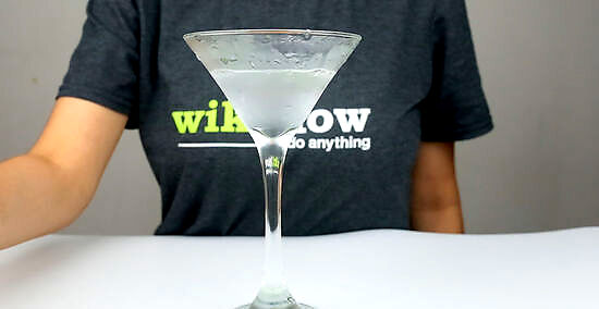Strain the martini into a chilled glass. Once the martini is mixed, cover the glass with a cocktail strainer. Pour the liquid through the strainer into a chilled glass so you keep the ice out of the glass. To chill the glass, place it in the freezer for 2 minutes before you pour the martini.