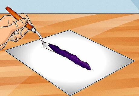 Place the paint in the center of a disposable palette starting from the edge. Use the palette knife to transfer the paint from the grinding slab and onto a disposable palette. Create a rough center line going from the edge of the disposable palette to approximately halfway across. Scrape the palette knife against the paper to remove the paint from the knife. The line doesn’t need to be neat. All that's important is that it begins on the edge of the paper.