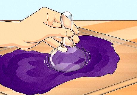 Use a glass muller to grind the oil paint for 1 minute. Once the paint has reached the right consistency, hold the muller in your fist and draw it over the paint. Grind the paint in either a figure 8 motion or in small circles. Tilt the muller slightly and spin it in a circle against the grinding slab to remove excess paint from the sides. You may find that the pigment changes color as the consistency changes. This is completely normal and most often happens with pigments such as ultramarine blue. A glass muller is a handheld tool that is used to grind pigment and linseed oil into a smooth paint mixture. These can be purchased from art stores or online.