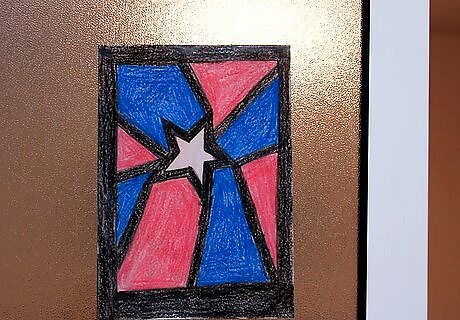 Hang or attach the drawing on a window. The light will shine through, the baby oil will intensify the colors and let the light shine through, giving the impression of a stained glass window.