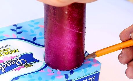 Trace where you will cut holes into the boxes and tubes. To create offshoots and exits from the boxes or longer tubes, you will need to fit the ends of other tubes into the sides of the cardboard. For example, you may want to have two long tubes connected parallel to each other by a short toilet paper tube, which would require you to cut a hole in the side of both of the longer tubes. Place the end of the tube you are tracing against the place you want the hole. Trace the outline of the roll. Continue tracing until you’ve outlined all of your holes.