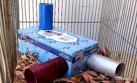 Use tissue boxes to allow for burrowing. You can add onto your tubes using tissue boxes, which make a great spot to add burrowing materials or other toys to your hamster’s tube maze. Use the tissue boxes as the corner(s) or your maze by attaching tubes to two of the adjacent sides of the box. Put bedding or shredded paper inside the tissue box so that your hamster can play in the box. Cover the open part of the tissue box with paper so that your hamster doesn’t crawl out.