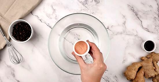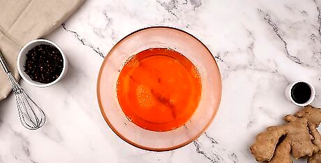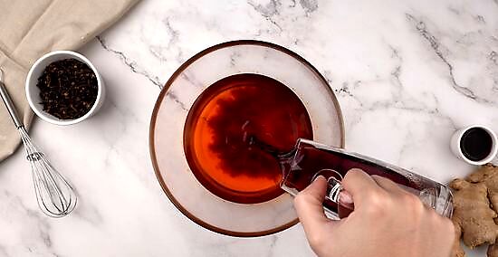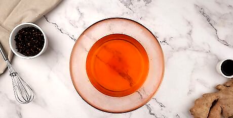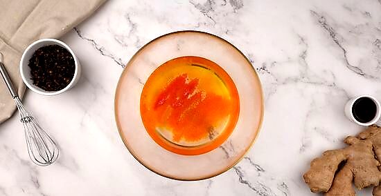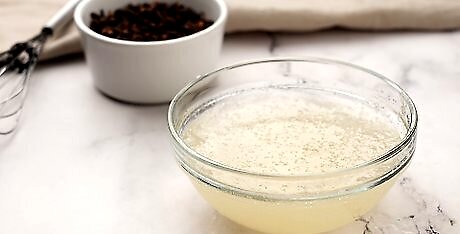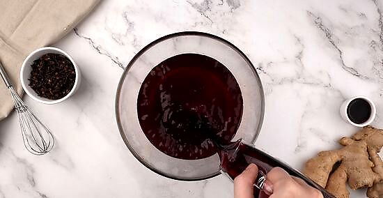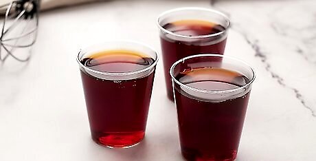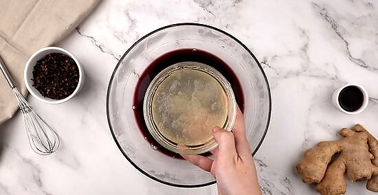 Add the gelatin to the mulled wine. In a separate mixing bowl, pour the gelatin liquid into your mulled wine. Use a spoon to stir until the ingredients are mixed evenly.