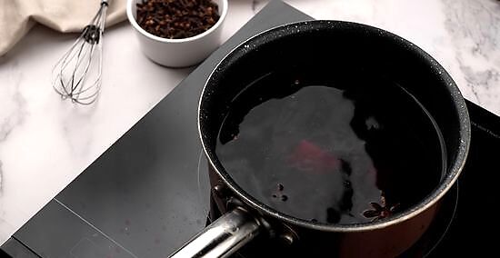 Heat the red wine, spices, sugar, vanilla, and whiskey. Pour these ingredients into a saucepan. Simmer this mixture over the stove for 10 minutes. For simmering, low to medium heat should be fine.