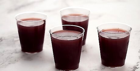 Pour your mixture into your shot glasses. You can use a turkey baster or a container with a spout to distribute the mixture between your shot glasses. Fill each glass just to the brim with the mixture.
