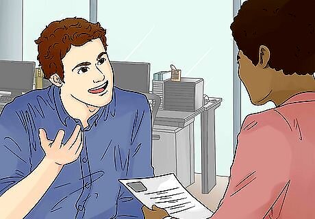 Monitor your body language. Even if you're saying all the right things, your body language can be a dead giveaway that you don't believe what you're saying or that you're just plain uncomfortable. Keep your arms uncrossed. Keep your head high and face your interviewer. You want to seem open, approachable, and confident. Mirroring their body language will make them unconsciously pick up on your "familiarity," making them comfortable and like you.