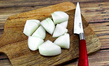 Wash and chop the vegetables. Wash 2 to 3 carrots, 3 to 4 stalks of celery, and get out 1 to 2 onions. Use a sharp knife to carefully chop the vegetables into large chunks. If you'd like to add any extra vegetables (such as leeks, fennel, tomatoes, mushrooms, or parsnips) wash and chop them too. You don't need to peel the vegetables first. If you'd like to make stock using vegetable peelings and scraps, substitute 4 to 6 cups (907 to 1.4 kg) of scraps for the chopped vegetables.
