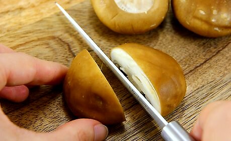 Preheat the oven and cut the vegetables. Turn the oven on to 400 degrees F (200 degrees C). Get out 1 large yellow onion and cut it into four pieces. Cut 6 large mushrooms and 2 roma tomatoes in half. You'll also need to roughly chop 1 medium carrot. You can also chop and use leek greens, celery, or seeded red pepper.