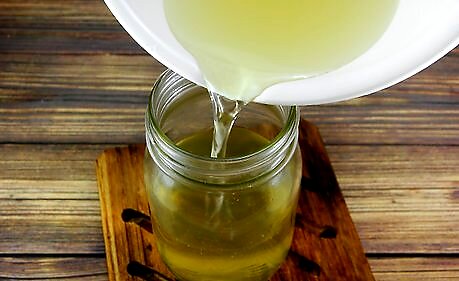 Strain the vegetable stock. Turn off the heat and use a slotted spoon to scoop out and discard the vegetables. Set a large bowl in the sink and place a fine mesh strainer over the bowl. Hold the stockpot with both hands and slowly pour the stock through the strainer into the bowl in the sink. If you'd like to filter the stock, you can line the bowl with cheese cloth or coffee filters.