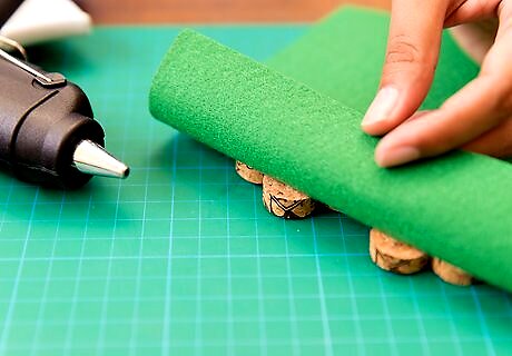 Trim the felt or cork board. Once the hot glue has dried you can trim the excess. Using a pair of sharp scissors, cut along the edge of the corks and remove any excess felt or cork board.