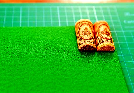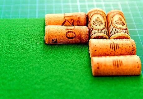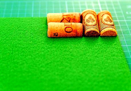 Place two more pieces of cork down on the felt. These two pieces of cork should lay perpendicular to the pieces that you already arranged on the felt or cork board. Be sure that the edge of the cork piece is lined up to the edge of the felt or cork board, inline with the previous pieces.