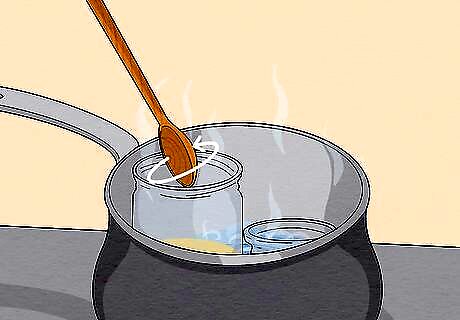 Stir occasionally with two separate wooden sticks or spoons - (a) to combine the waxes with the oils and (b) for the borax to dissolve in the water. Once the waxes have dissolved, take both containers out of the water bath.