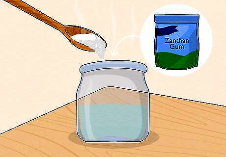 Start mixing the liquid base (water) with the hand-mixer,and slowly pour 1/8 tsp Xantham gum into the liquid;