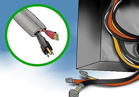 Hide all the excess cables. Now is the time to zip tie or tape all your cables together. You can tape them up and tape them to the back of the case so you can’t see them when the side panel goes back on.