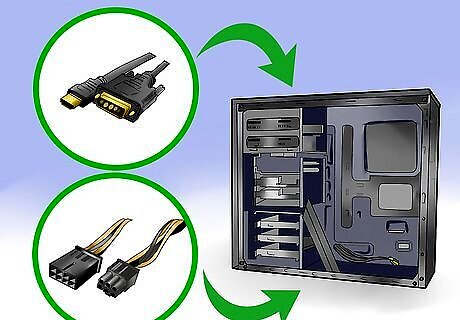 Gather all the cables you need first. The first thing to do is get all of the cables you need and bring them out of the left side of the PC (behind the motherboard). You will most likely need a motherboard connector, CPU connector, and a PCI-E connector (if you have a dedicated GPU or any other PCI accessories).