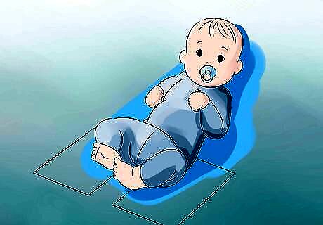 Position your child. Have your baby sit in someone else’s lap or in a comfortable chair, with his or her knees bent at a 90-degree angle.