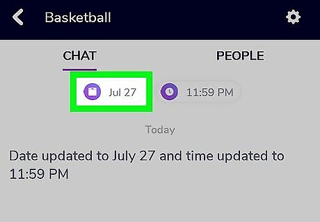 Tap the date at the top. The date, time, and location are listed at the top of the screen. Tapping on the date brings up a calendar view so you can see when this activity is planned. #Ask any follow-up questions in the chat. If any details are missing, you can ask questions in the chat. To type a question or message, tap the bar that says "Write a message" then compose your message or question. When you're ready to post it, tap the paper plane icon to send it.