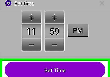Tap Set Time. It's the purple button at the bottom of the screen.