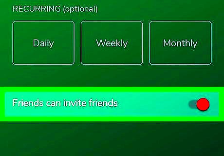 Tap the switch Android 7 Switch On to allow friends to invite friends (optional). If you want to allow friends to invite other friends, tap the switch below "Recurring" to allow friends to invite other friends.