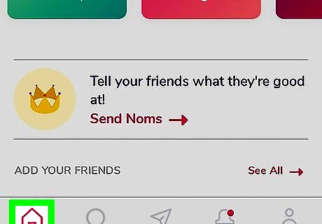 Tap the Home icon. The Home tab is the tab that has an icon that resembles a house in the lower-left corner of the screen. This displays your current activities as well as a few suggested activities you can invite friends too.