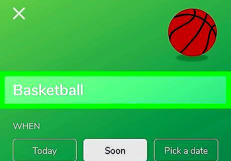 Name the activity. Most activities already have a generic name at the top. You can rename it to whatever you change the name to whatever you want. You may want to change a name like "Video games" to something like "Fortnite" or "Minecraft". If you tapped the paper Airplane icon, type a name for the activity where it says "What do you want to do?"