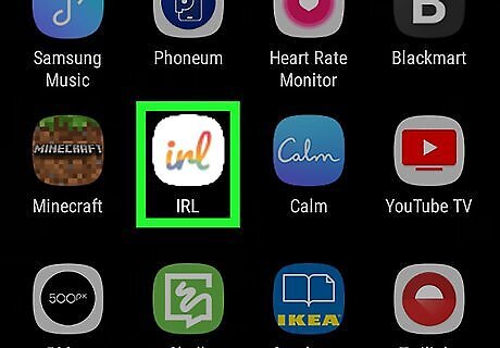 Open IRL - Let's Hang. IRL is the app that has a white icon with cursive "irl" written in rainbow-colored lower-case letters.