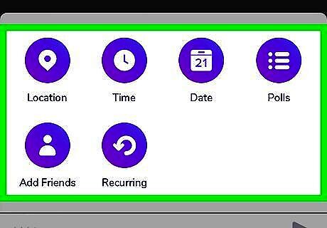 Change details. If at any time you need to change the details of the activity, tap Location, Time, Date, Add Friends, and Recurring to change the detail of the activity.