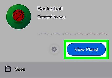 Tap Wanna Join? or View Plans!. For a new invite, tap the green button on the right below a new invite that says "Wanna Join?" To view the details of an activity you're already joined, tap the blue button below the activity that says "View Plans!" This displays the activity details and chat for that activity.